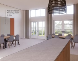 - Artist impression bijeenkomstruimte dorpshuis Noordhoek. Kijkwijzer: het gaat hier om een impressie van de bijeenkomstruimte. Zo wordt het definitieve kleurgebruik nog nader afgestemd met de gebruikers van het dorpshuis. Aan deze impressie kunnen verder geen rechten worden ontleend. Copyright Geluk Bouwgroep.
